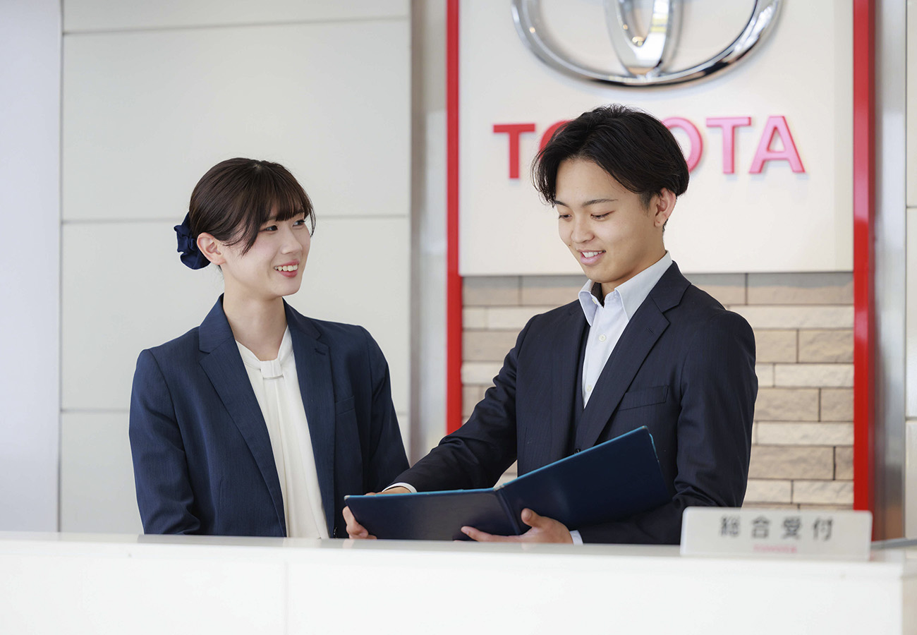 - 営業活動では、企業の社長さまを訪問し、営業車を希望する会社に提案したり、買い替えを検討するご家族に説明を行ったりしています。