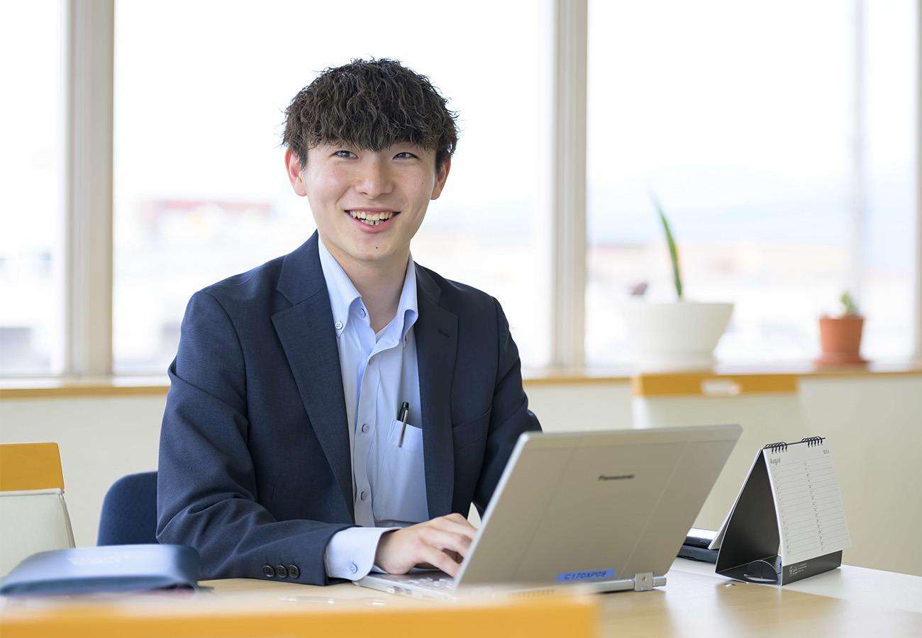 - 様々な業種の多くの人と触れあう営業職に惹かれ入社しました。幅広い世代の方とお付き合いさせていただく中で、自分自身も成長できるのが魅力です。